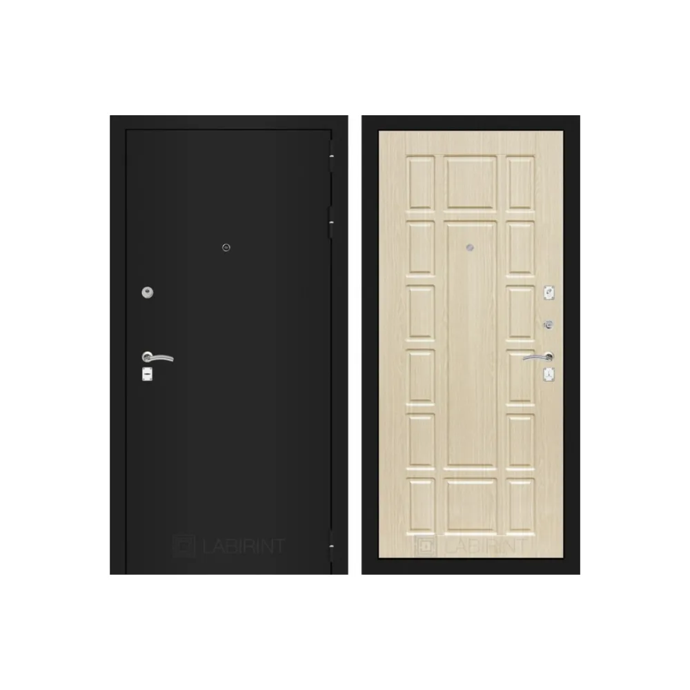 Входная дверь Labirint CLASSIC шагрень черная 12 - Беленый дуб