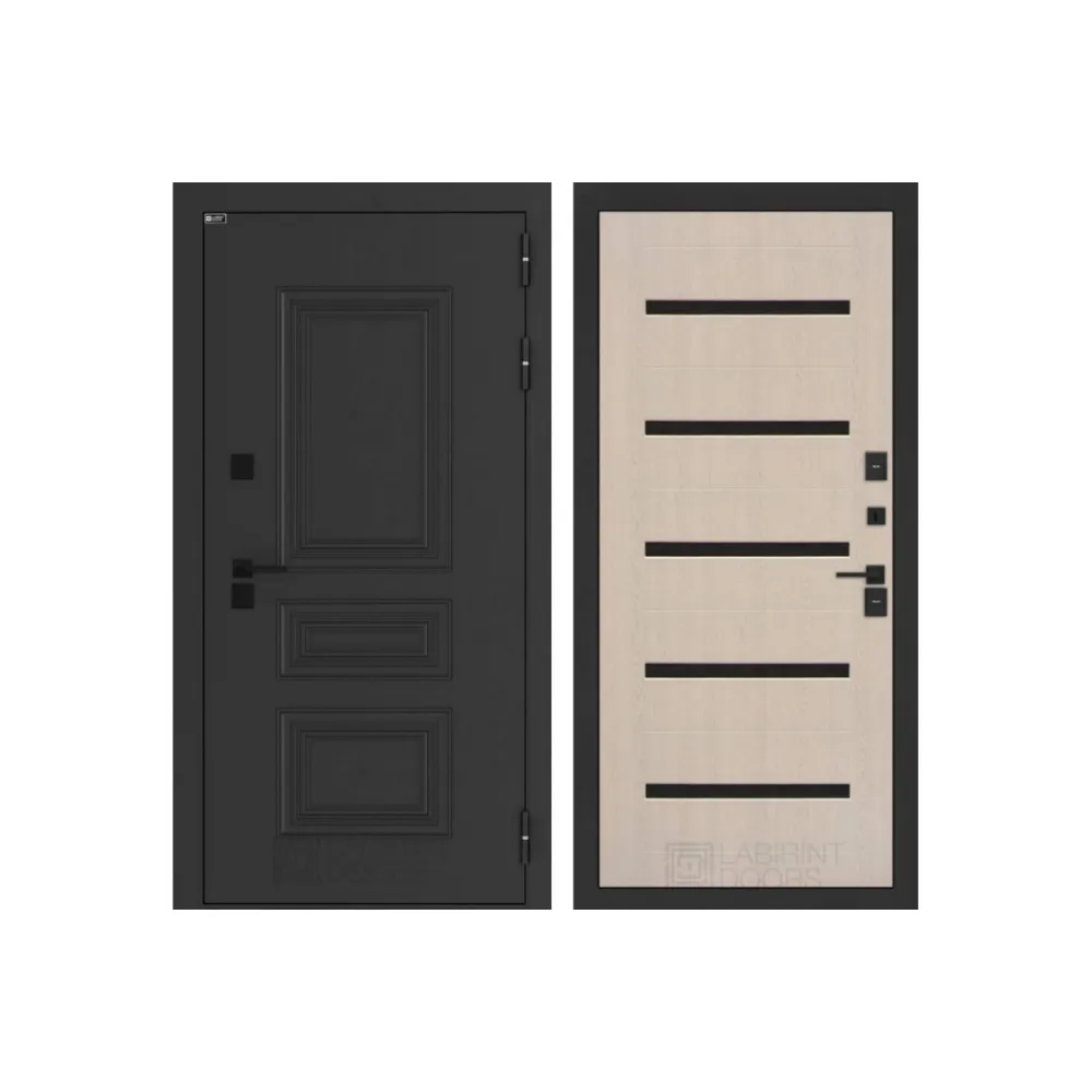 Входная дверь Аляска Лайт 01 - Беленый дуб, стекло черное