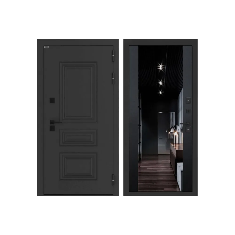 Входная дверь Аляска Лайт с Зеркалом тонированным Максимум - Черный кварц