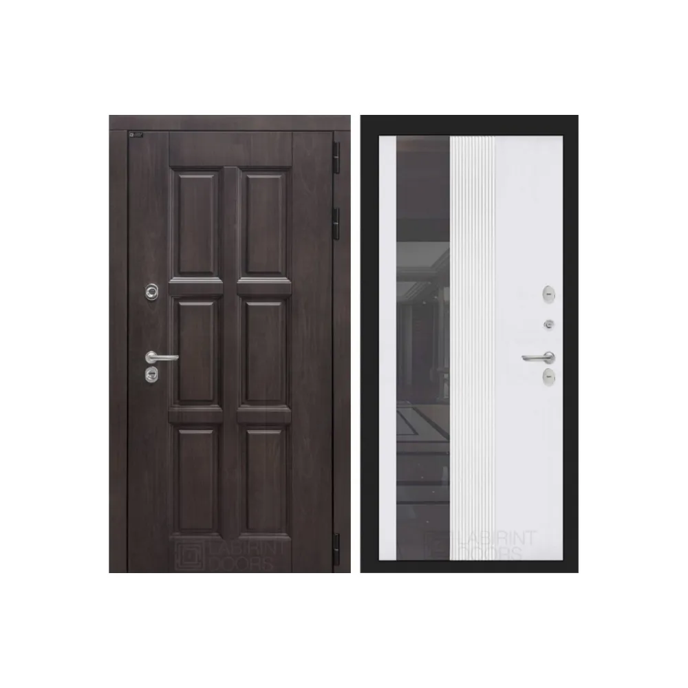 Входная дверь Лондон с Зеркалом 32 тонированным - Белый рельеф софт
