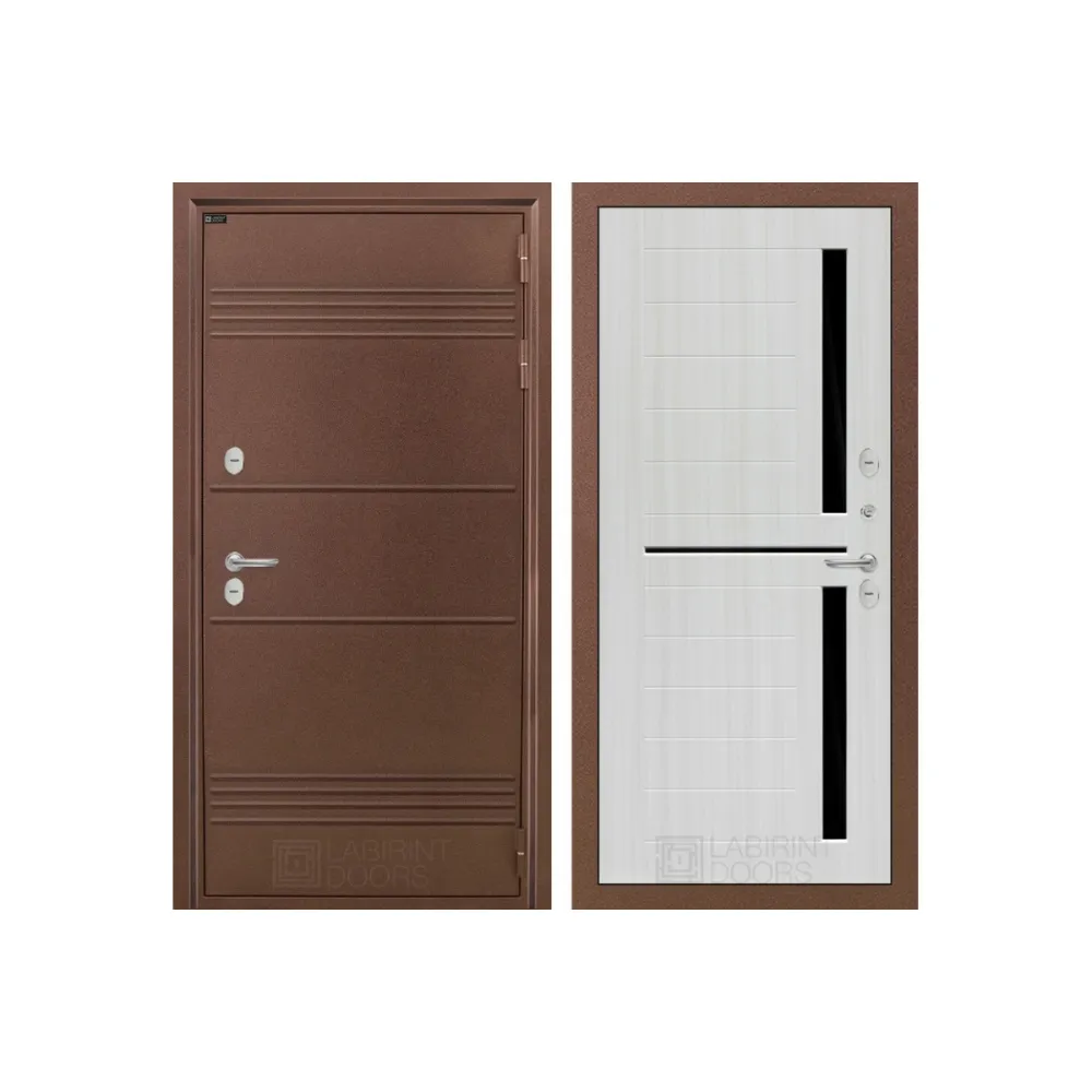 Входная дверь с терморазрывом Лабиринт Термо Лайт 02 - Сандал белый, стекло черное