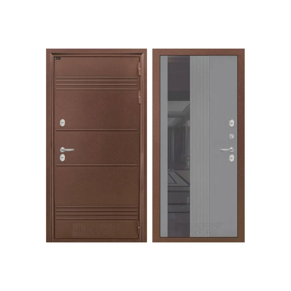Входная дверь Термо Лайт с Зеркалом 32 тонированным - Серый рельеф софт