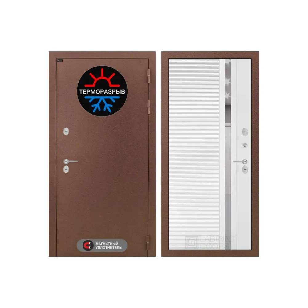 Входная дверь Термо Магнит 31 - Белый софт, зеркальная вставка с тонировкой