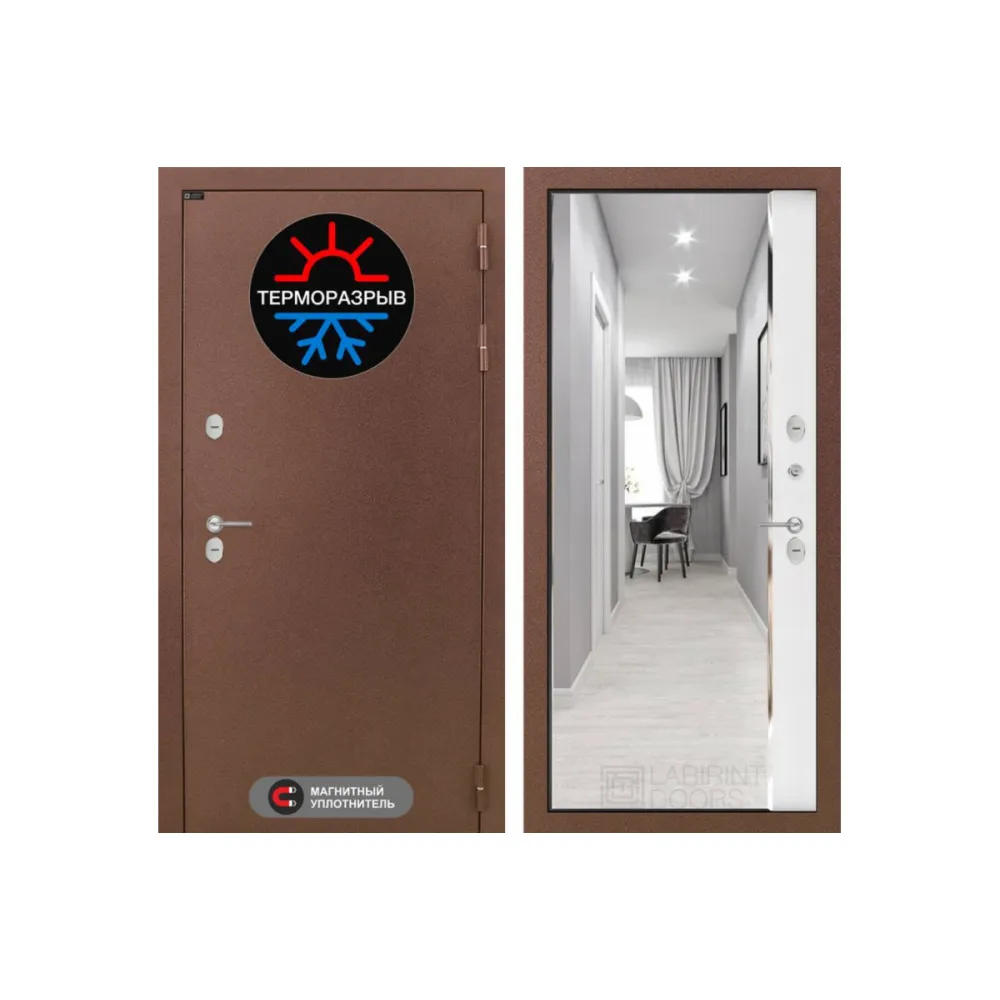 Входная дверь Термо Магнит с зеркалом Панорама - Белый софт