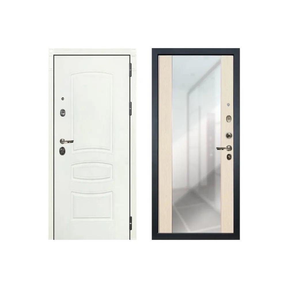 Металлическая дверь Лекс Сенатор Белая с зеркалом беленый дуб ( панель №45)