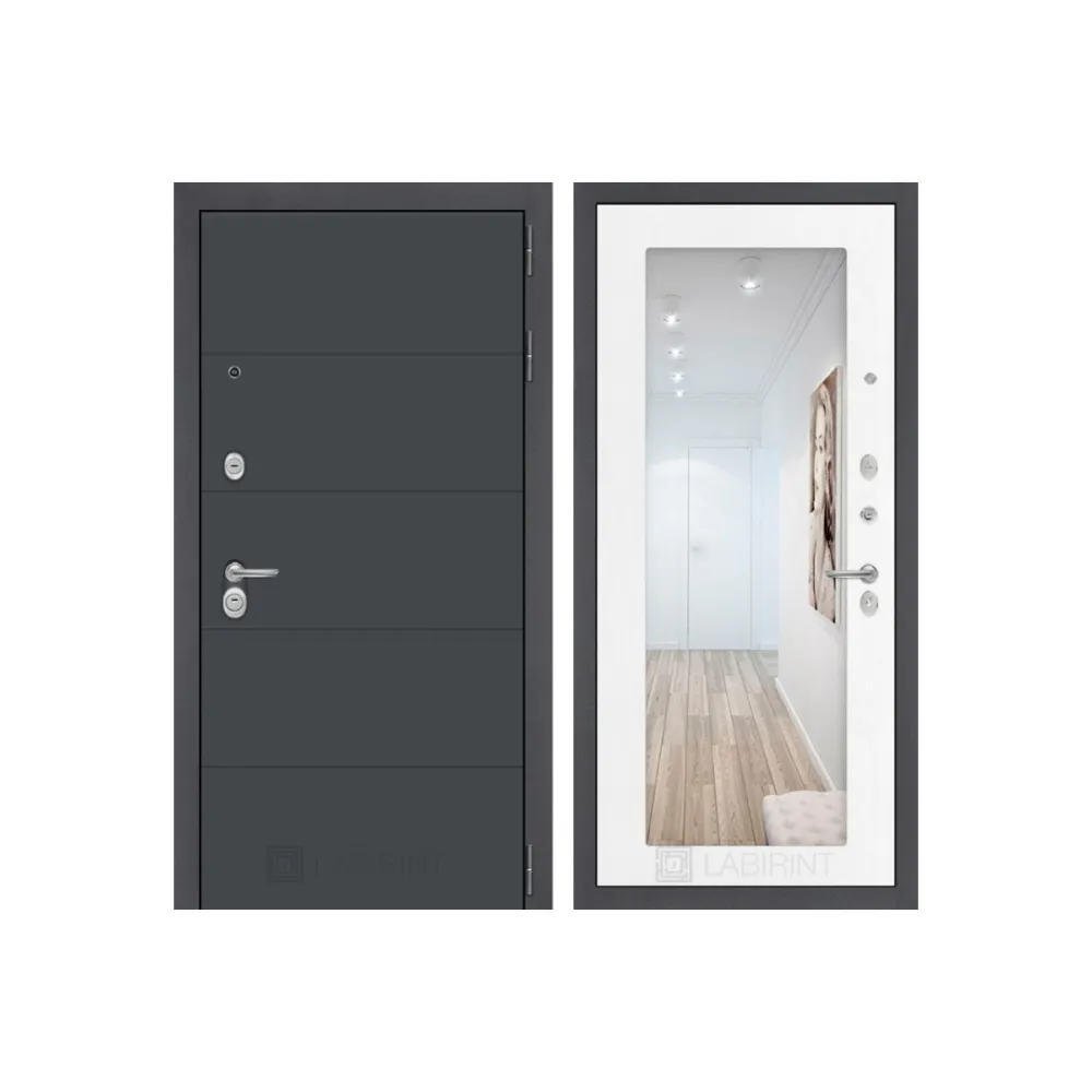 Стальная дверь Labirint ART графит с Зеркалом 18 Белое дерево