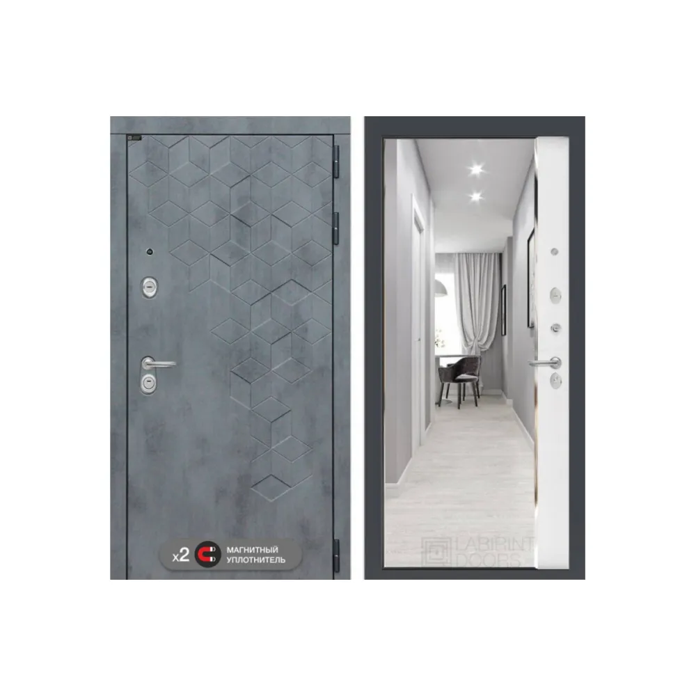 Входная дверь Бетон с зеркалом Панорама - Белый софт