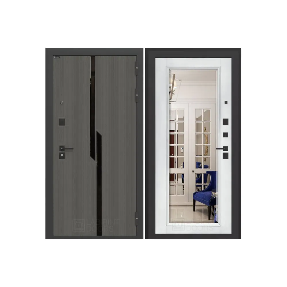 Входная дверь CARBON с Зеркалом Фацет - Белый софт