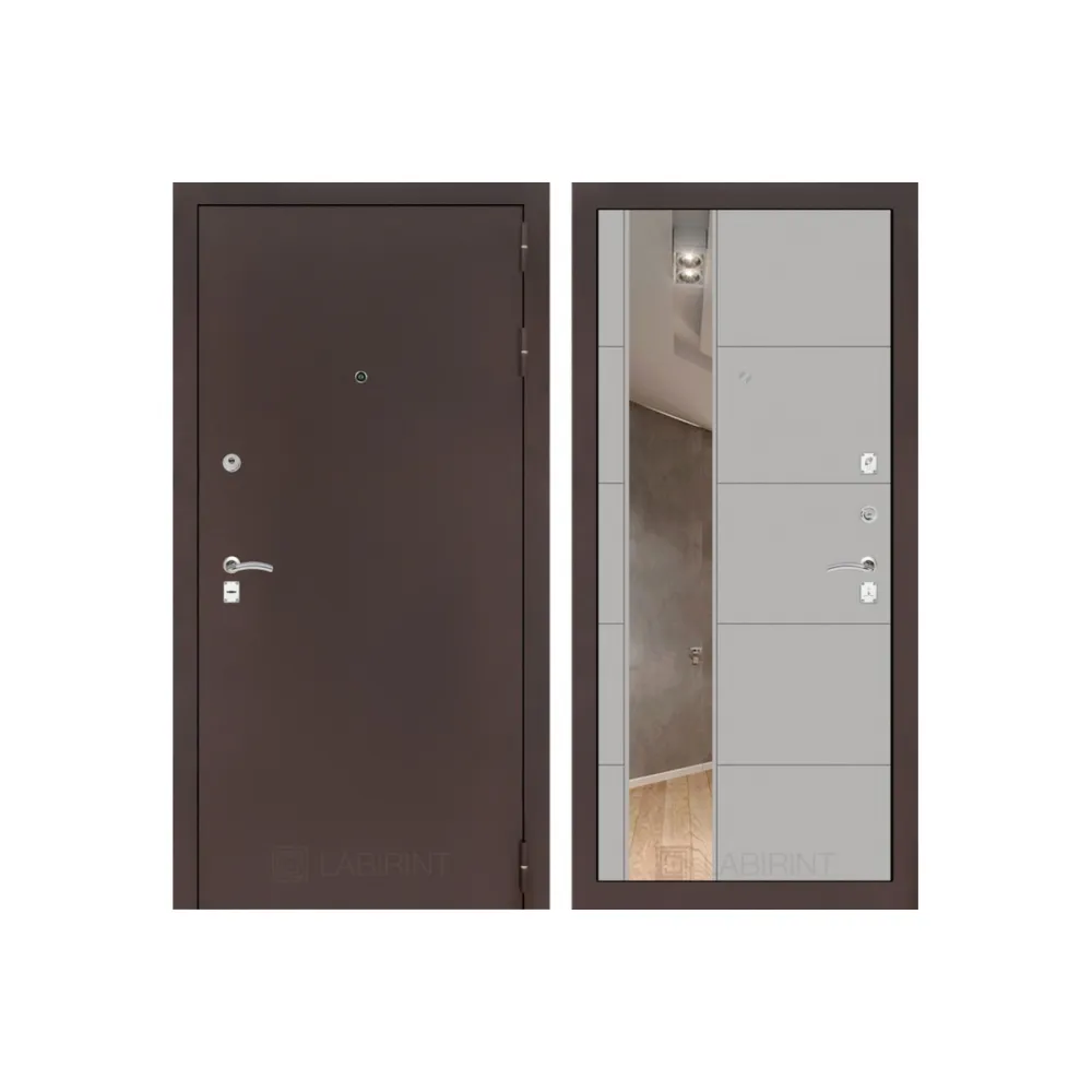Входная дверь CLASSIC антик медный с Зеркалом 19 - Грей софт