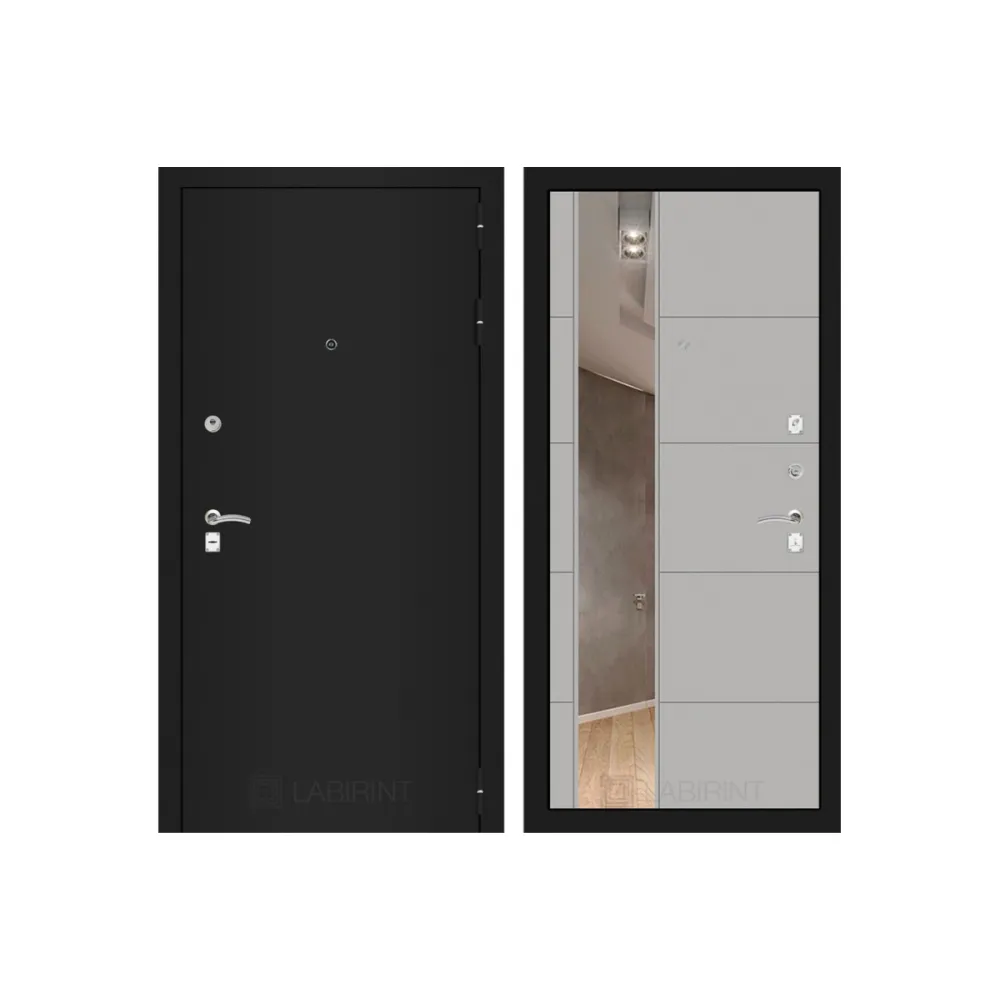 Входная дверь CLASSIC шагрень черная с Зеркалом 19 - Грей софт