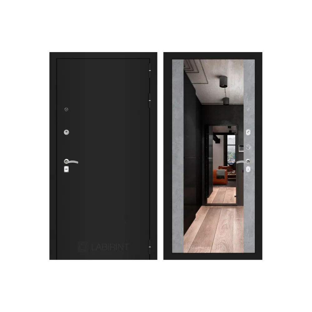 Входная дверь CLASSIC шагрень черная с Зеркалом Максимум - Бетон светлый