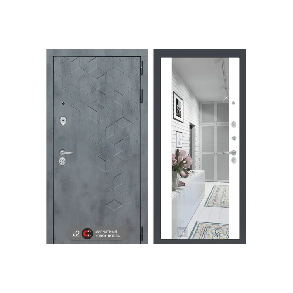 Входная дверь labirint Бетон с зеркалом Максимум (цвет Белый софт)