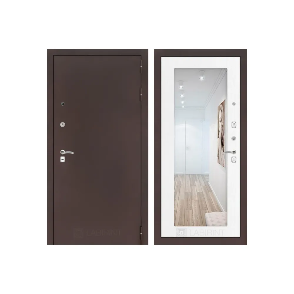 Входная дверь Labirint CLASSIC антик медный с Зеркалом 18 - Белое дерево