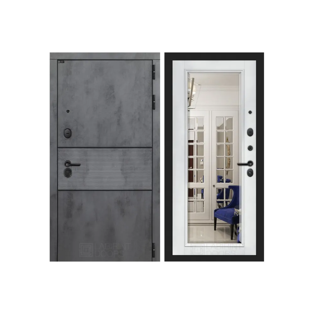 Входная металлическая дверь Лабиринт INFINITY с Зеркалом Фацет - Белый софт