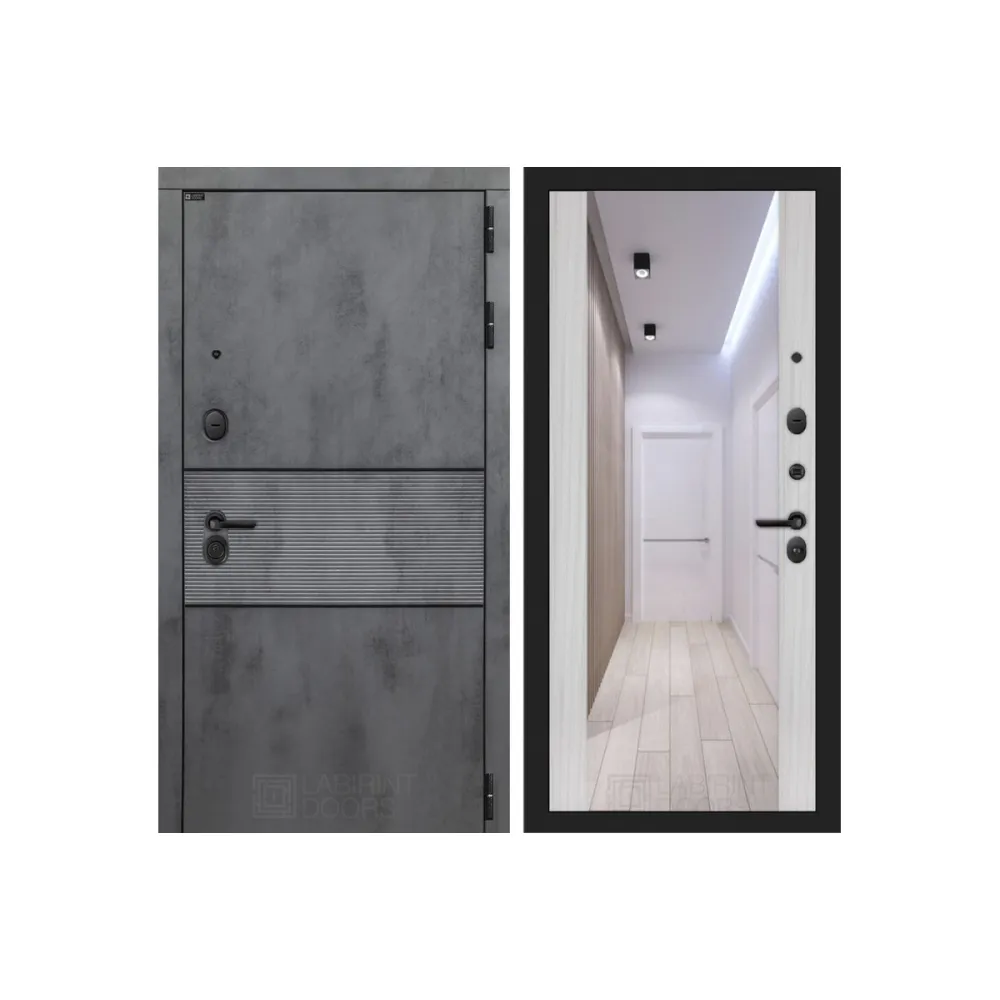 Входная металлическая дверь Лабиринт INFINITY с Зеркалом Максимум - Сандал белый