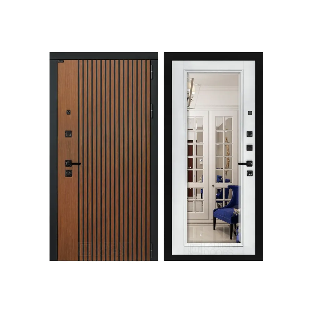 Входная металлическая дверь Лабиринт STORM с Зеркалом Фацет - Белый софт