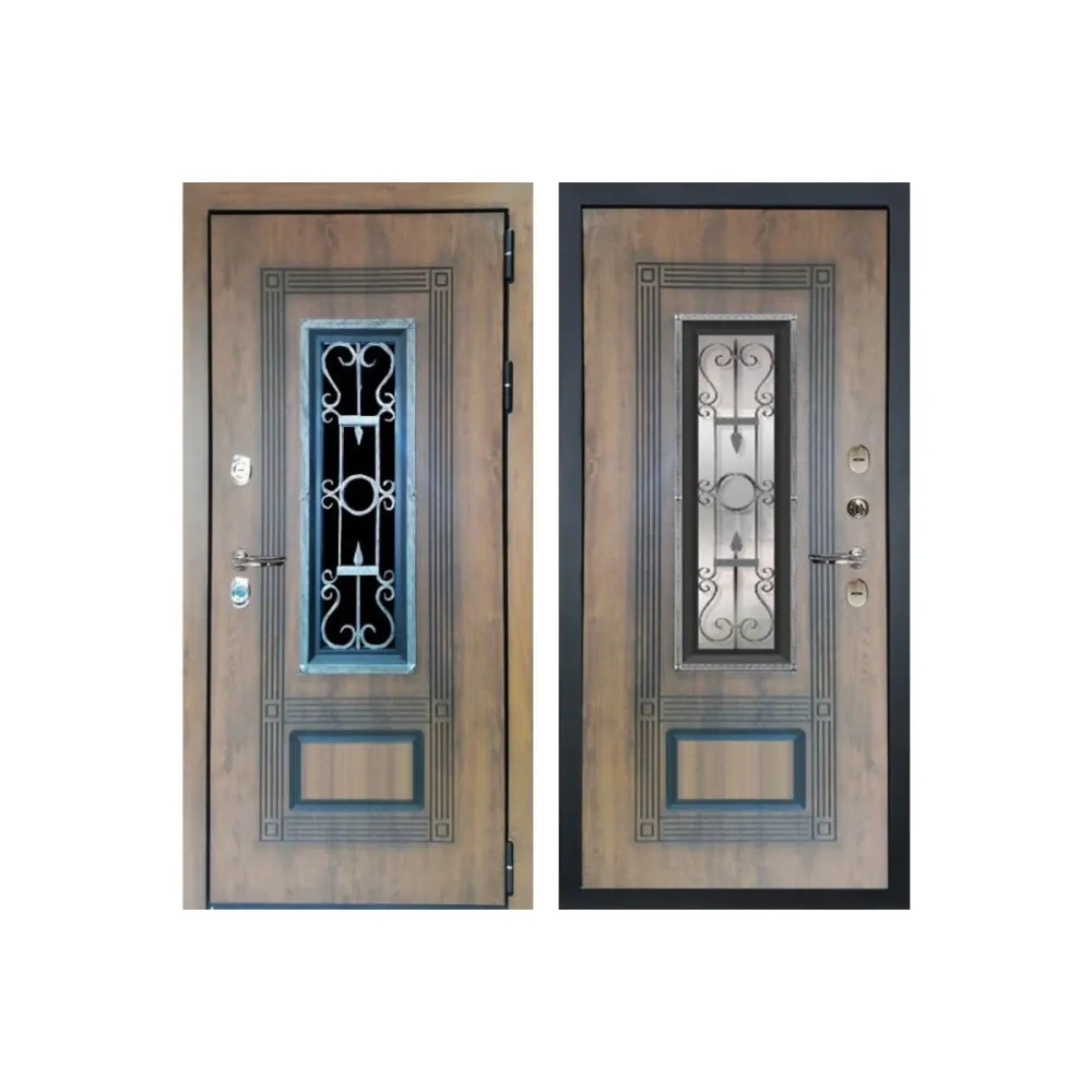 Входная дверь с терморазрывом Лекс Термо Русь с окном и ковкой (Голден патина)