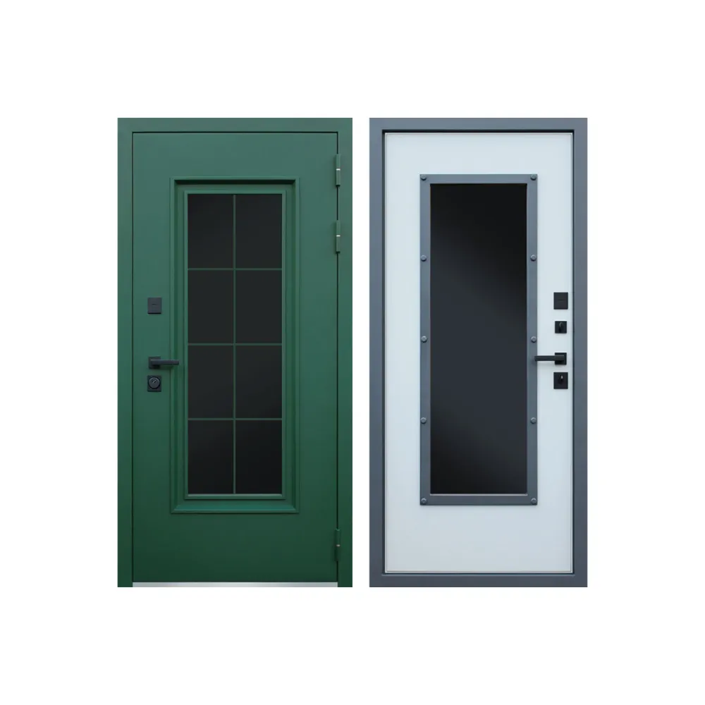 Входная уличная дверь с терморазрывом АСД Олимп 3К с окном и английской решеткой