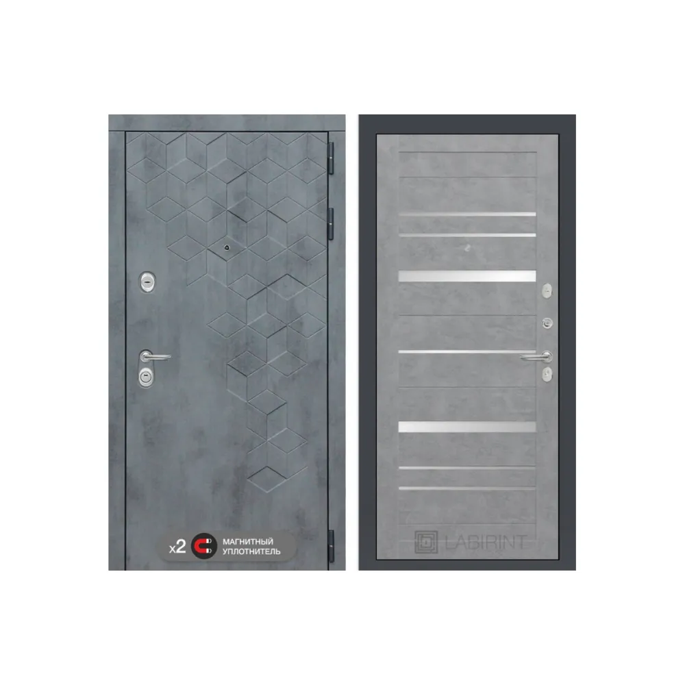 Входная дверь labirint Бетон 20 (цвет Бетон светлый, зеркальные вставки)