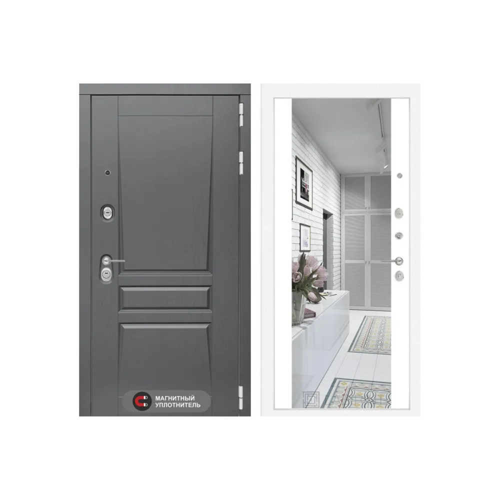 Входная дверь Лабиринт Платинум с Зеркалом Максимум (цвет Белый софт)