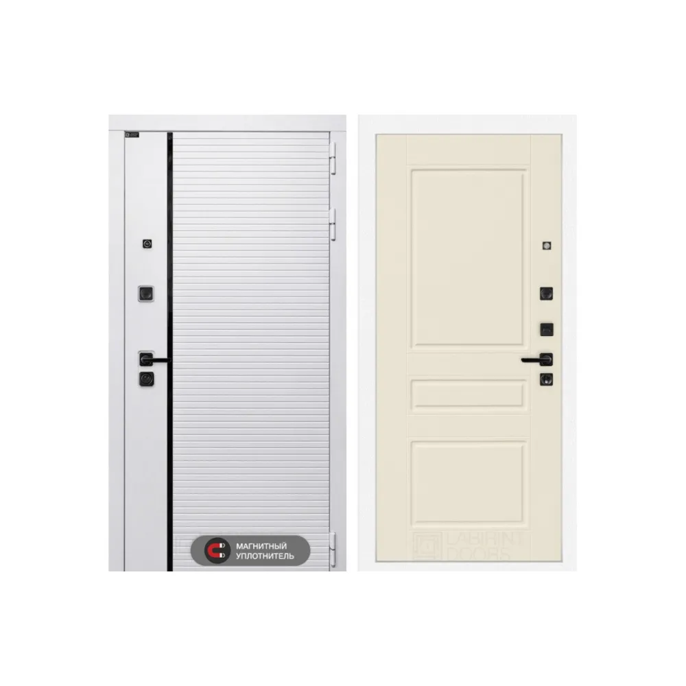Фурнитура в черном цвете: Броненакладка врезная, накладка со шторкой, глазок , дверная ручка, ночная задвижка. Цилиндр ключ-вертушка Guardian, регулируемый эксцентрик.