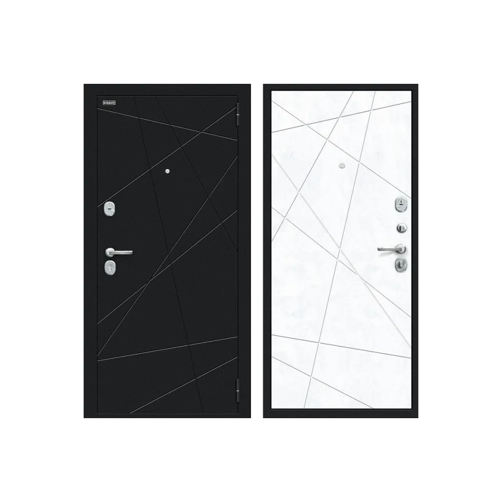 Четыре вертикально-горизонтальных усиливающих омега-профиля (ребра) создают единую монолитную жесткость и прочность конструкции. Сверхпрочная конструкция «6x2» — двойная толщина стали профиля полотна, двух контуров коробки, в зонах замка и петель. Дополнительную стойкость ко взлому обеспечивают два противосъемных штыря.